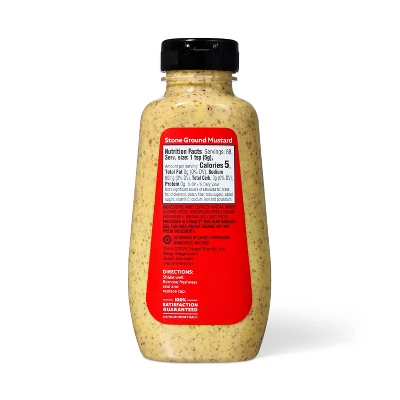 This Stone-Ground Mustard from Market Pantry™ is a classic spread you’ll love adding to sandwiches and beyond. This stone ground mustard is low calorie and kosher and packs tangy, slightly spicy flavor. Great on soft pretzels in addition to a variety of sandwiches, it’s sure to become a new staple in your fridge.